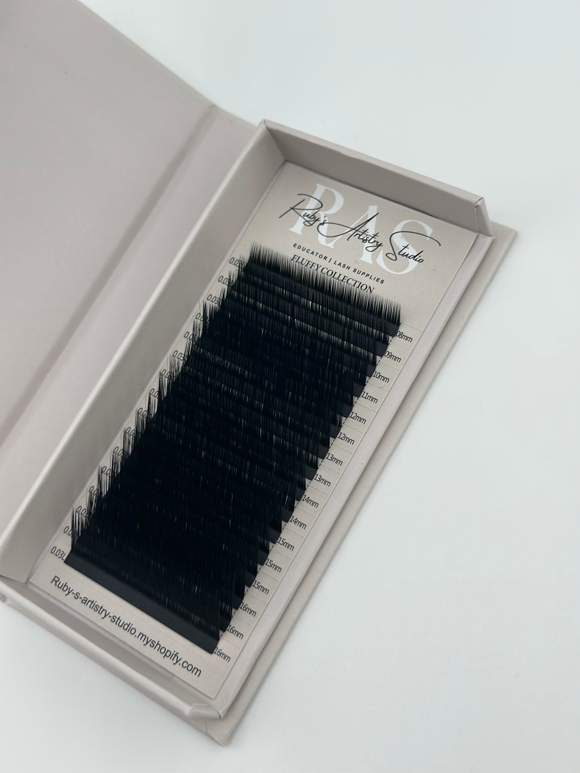 Fluffy lash trays that offer a glamorous effect. They have a matte finish that reduces glare and gives a more natural appearance.